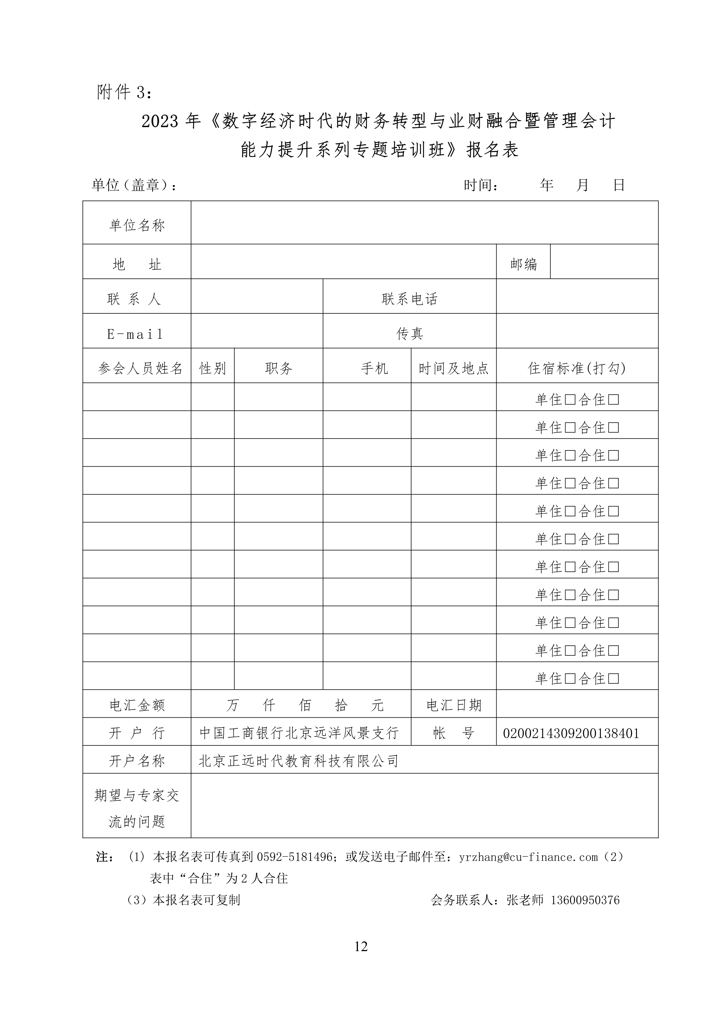 2023年《數(shù)字經(jīng)濟時代的財務轉(zhuǎn)型與業(yè)財融合暨管理會計能力提升系列專題培訓班》報名表